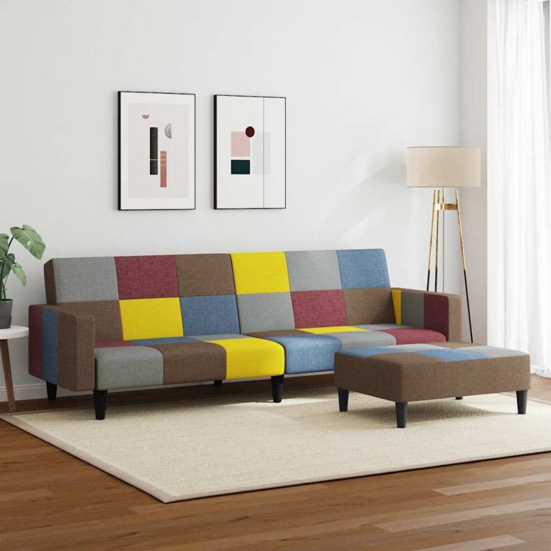 Начало Дом и градина Мебели Дивани 2-местен диван с табуретка, пачуърк, текстил