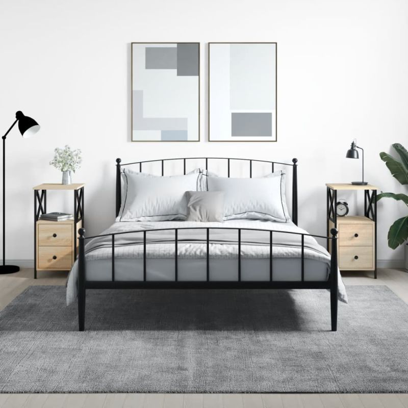 Със семпъл и компактен дизайн, тези нощни шкафчета се вписват лесно във вашата спалня или всекидневна и придават непреходен чар на вашия интериор. Издържлив материал: Инженерната дървесина е с изключително качество с гладка повърхност и също така се отличава със здравина, стабилност и устойчивост на влага. Здрава рамка: Желязната рамка осигурява здравина и стабилност.Достатъчно място за съхранение: Нощната масичка предлага достатъчно място за съхранение, за да държите вашите различни ежедневни вещи добре организирани и леснодостъпни.Декоративна функция: Можете също така да поставите любимите си снимки или цветя върху страничната масичка, за да обогатите живота си.Регулируеми крачета: Четири регулируеми крачета с пластмасови подложки поддържат страничния шкаф балансиран на неравен терен и увеличават стабилността. Внимание:За предотвратяване на преобръщане този продукт трябва да се използва с предоставения анкер за стена.