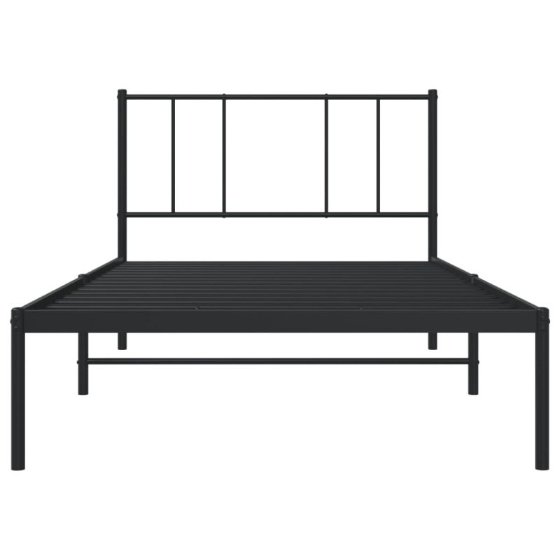 Метална рамка за легло с горна табла, черна, 100x200 см