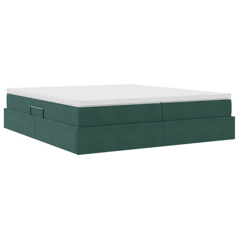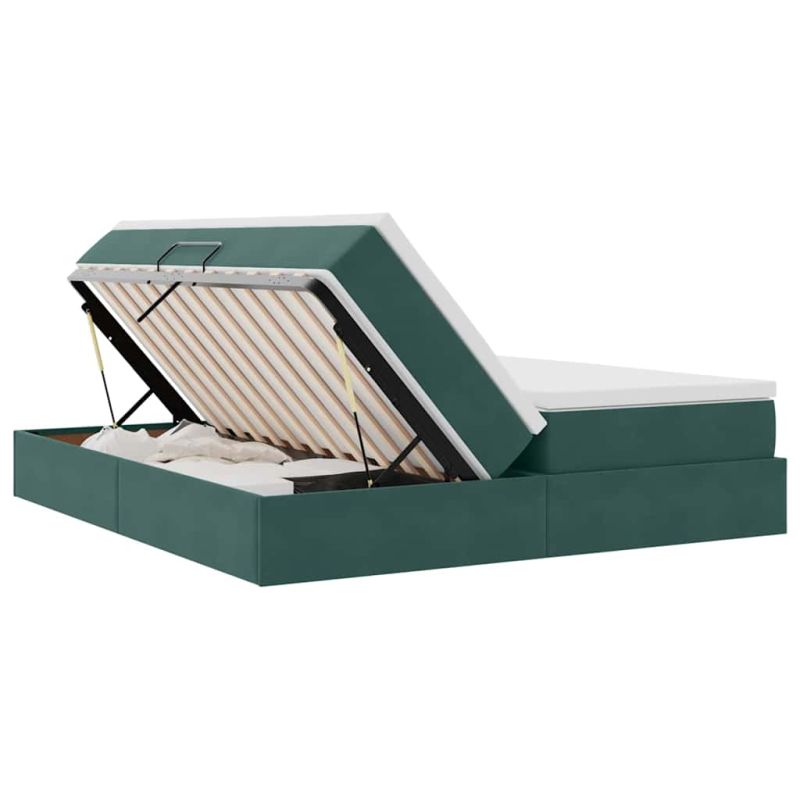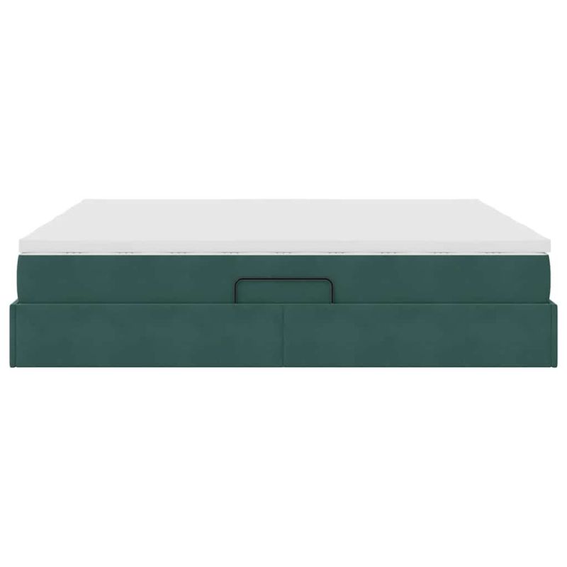 Легло с място за съхранение и матрак Тъмен зелен 200 x 200 cm