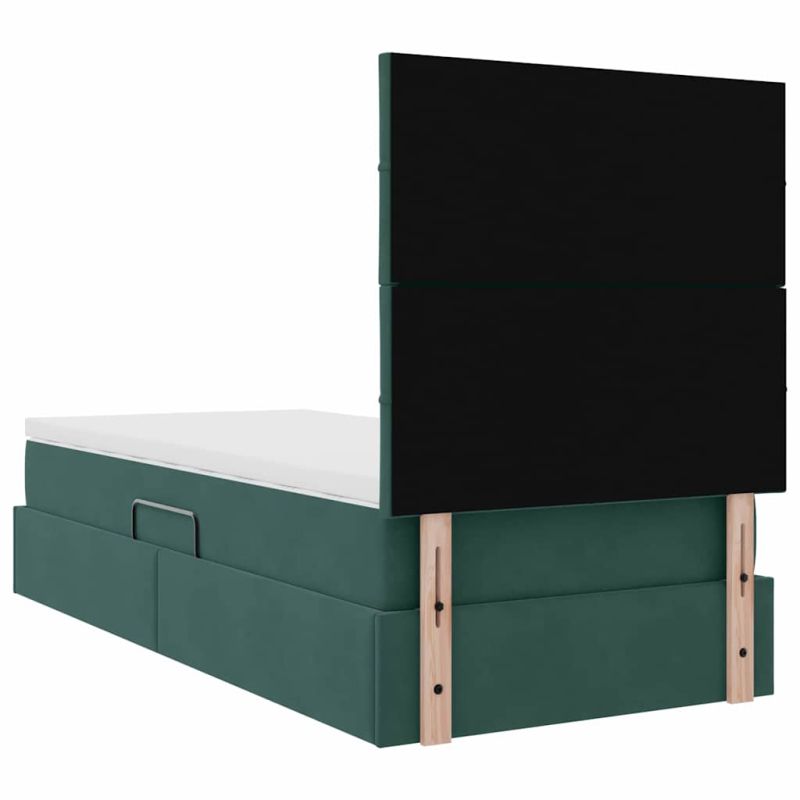 Легло с място за съхранение и LED Тъмен зелен 100 x 200 cm