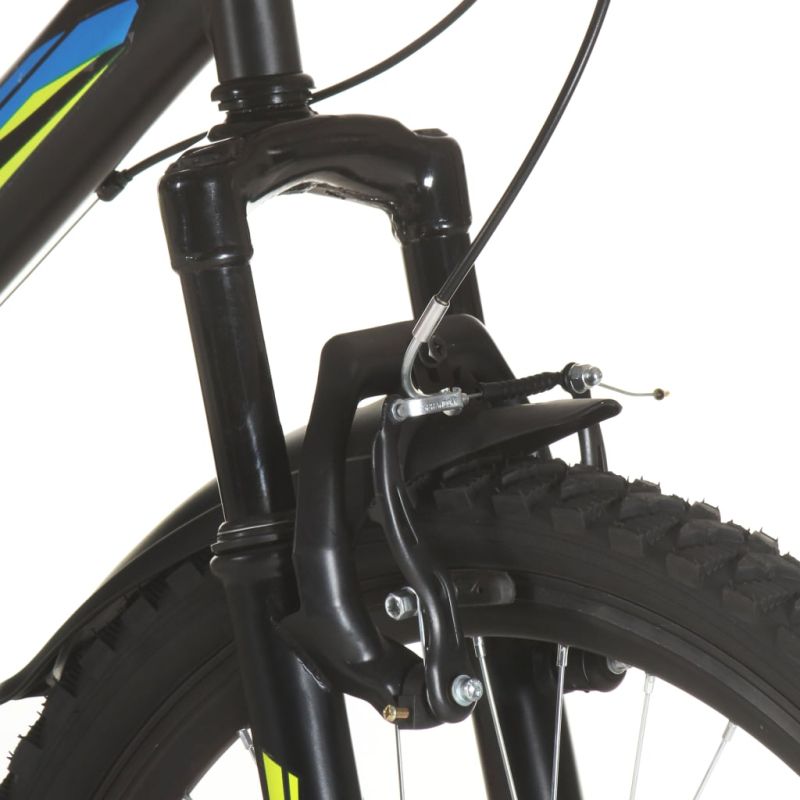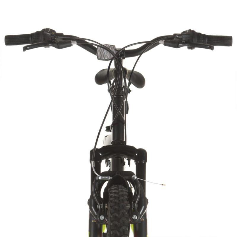 Прекосете любимата си пътека с този планински велосипед! Това колело с гуми с дебелина 26-цола ви предлага плавно преживяване при каране дори върху неравен терен. Вилката на окачването и рамката съдействат за плавното каране, докато здравите и леки алуминиеви джанти осигуряват допълнителна стабилност. Мотивацията идва под формата на придвижване с 21 скорости с преден и заден дерайльор. Регулируемата без инструменти стойка на седалката съдейства лесно да настроите комфортна височина. Можете да карате с висока или ниска седалка с голяма лекота. Челюстните (V brake) спирачки са пригодени за рязко спиране във всякакви условия. Предупреждение! Възможно е да има законови изисквания за осветление, рефлектор и т.н. в зависимост от местоположението. Спазвайте местните и законовите изисквания.