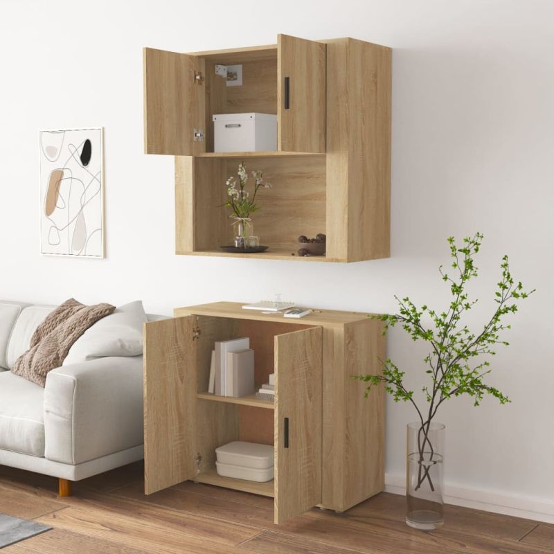 Търсите стилен висок шкаф? Този висок шкаф добавя уникален чар към вашия интериор! Издържлив материал: Инженерната дървесина е с изключително качество с гладка повърхност и се отличава със здравина, стабилност и устойчивост на влага.Достатъчно място за съхранение: Сайдбордът предоставя достатъчно място за съхранение, където да държите различни ваши вещи добре организирани и леснодостъпни.Функция за монтиране на стена: Шкафът за съхранение може да се монтира на стената в горната част на бюфета, за да се създаде висок шкаф, което спестява място на пода. По този начин можете да увеличите максимално пространството на пода и да поддържате ред и чистота. Добре е да се знае:За да бъде сглобяването възможно най-лесно, всеки продукт се доставя с ръководство.Винтовете и дюбелите за вътрешната стена не са включени. Съветваме ви да намерите и използвате винтове и дюбели, подходящи специално за вашите стени. Ако не сте сигурни, можете да се консултирате с професионалист. Моля, прочетете и следвайте всяка стъпка от инструкциите. Внимание:За предотвратяване на преобръщане този продукт трябва да се използва с предоставения анкер за стена.