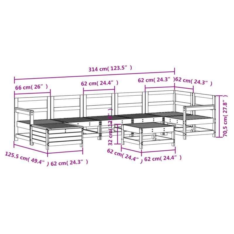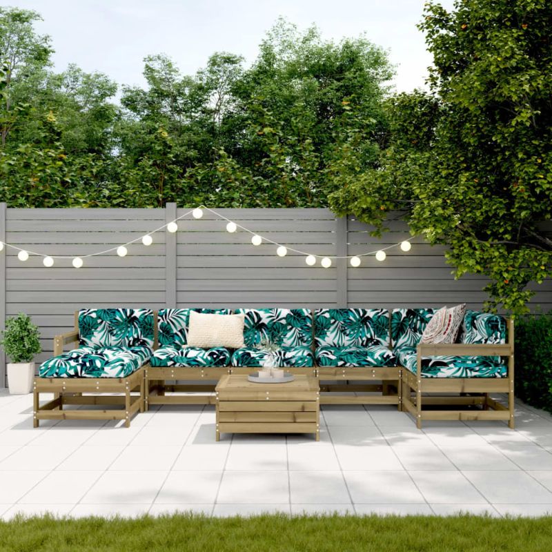 Този дървен градински лаундж комплект с летвен дизайн ще бъде чудесно допълнение към вашата градина, вътрешен двор или тераса, за да се насладите на уютно време със семейството или приятелите си. Здрав и издръжлив материал: Масивната борова дървесина е известна със своята здравина и издръжливост. Нейните прави зърна и отличителни възли допринасят за рустик чара ѝ. Тя е импрегнирана с консервиращ разтвор и е подложена на автоклавно третиране, което повишава устойчивостта ѝ на гниене и атмосферни влияния. Добро проветряване и предотвратяване на образуването на натрупвания: Дизайнът на ламелите спомага за оптимален въздушен поток и ефективно предотвратява събирането на вода, като осигурява суха и удобна седалка. Разнообразна употреба: Градинската табуретка за крака може да се използва не само за сядане или отпускане на краката ви, но може да се използва и като масичка за кафе, за да държите вашите напитки, храна и други декорации. Модулен дизайн: Този комплект външни мебели има модулен дизайн, което го прави напълно гъвкав и лесен за преместване, така че можете да създадете персонализирана подредба на външни мебели. Добре е да се знае:За да сте сигурни, че вашите външни мебели ще останат красиви, ви препоръчваме да ги защитите с водоустойчиво покривало. Максимално 110 кг на седалка.
