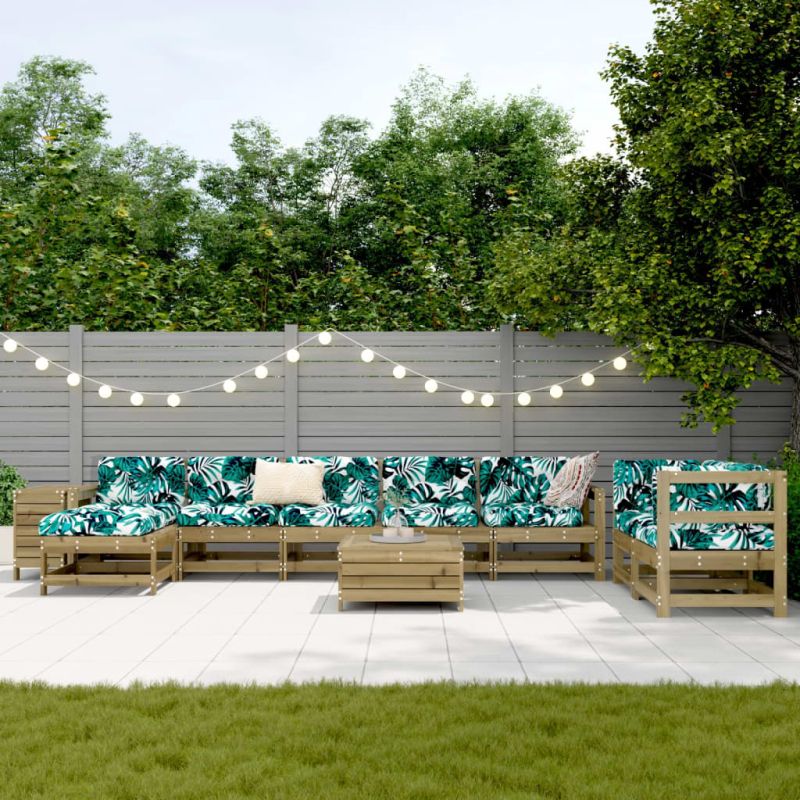 Този дървен градински лаундж комплект с летвен дизайн ще бъде чудесно допълнение към вашата градина, вътрешен двор или тераса, за да се насладите на уютно време със семейството или приятелите си. Здрав и издръжлив материал: Масивната борова дървесина е известна със своята здравина и издръжливост. Нейните прави зърна и отличителни възли допринасят за рустик чара ѝ. Тя е импрегнирана с консервиращ разтвор и е подложена на автоклавно третиране, което повишава устойчивостта ѝ на гниене и атмосферни влияния. Добро проветряване и предотвратяване на образуването на натрупвания: Дизайнът на ламелите спомага за оптимален въздушен поток и ефективно предотвратява събирането на вода, като осигурява суха и удобна седалка. Разнообразна употреба: Градинската табуретка за крака може да се използва не само за сядане или отпускане на краката ви, но може да се използва и като масичка за кафе, за да държите вашите напитки, храна и други декорации. Удобна маса: Градинската маса ви осигурява удобно място за лесно достигане до най-важните неща. Модулен дизайн: Този комплект външни мебели има модулен дизайн, което го прави напълно гъвкав и лесен за преместване, така че можете да създадете персонализирана подредба на външни мебели. Добре е да се знае:За да сте сигурни, че вашите външни мебели ще останат красиви, ви препоръчваме да ги защитите с водоустойчиво покривало. Максимално 110 кг на седалка.