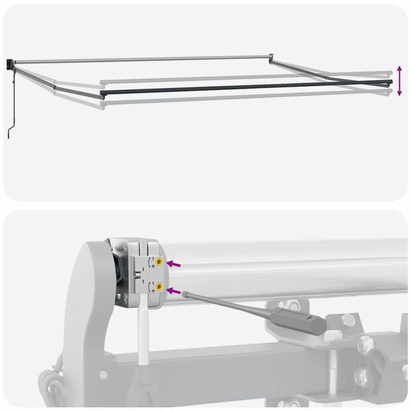 Този автоматичен прибираем сенник дава и практическа, и стилна стойност на всяко открито пространство. С чистите си линии и функционален дизайн, той е модерен и идеално подобрява патии или балкони, осигурявайки ефективна защита от слънцето. Гладката му текстура и минималистичен дизайн създават приятно място за отдих за семейства и приятели. Материали: Изработен от полиестер и метал, този сенник съчетава устойчива тъкан с надеждна алуминиева рамка, осигурявайки стабилност независимо от времето. Тази комбинация не само добавя стил, но и предлага ефективна защита от UV лъчи, запазвайки качествата си във времето. Включени компоненти: С LED лентите, този сенник не просто осигурява сянка, но и осветление. Интегрираните LED ленти предлагат много опции за осветление, подобрявайки вечерните събирания и настроението на патията. Функции /Функция /Дизайн: Прибираемият механизъм позволява на потребителите да регулират сянката с лекота. Тази комбинация от функционалност и здравина е пример за съвременен живот на открито, който се вписва идеално в различни стилове. Препоръчителни употреби: Този сенник е универсален и идеален за градини, дворове или търговски тераси, предлагащ чудесно решение за личен отдих или обществени събития. Неговата гъвкавост го прави подходящ за всякакви пространства. Грижа и поддръжка: За да запазите привлекателността на сенника, редовно почиствайте полиестерната тъкан с нежна кърпа и избягвайте агресивни химикали. Проверките на механизма ще осигурят безпроблемно функциониране, за да остане красив и полезен. Децата трябва да бъдат наблюдавани, за да се гарантира, че няма да си играят с уреда. Пазете децата далеч от зоната за сглобяване.Внимание: Прочетете внимателно инструкциите преди употреба и ги запазете за по-нататъшни справки.