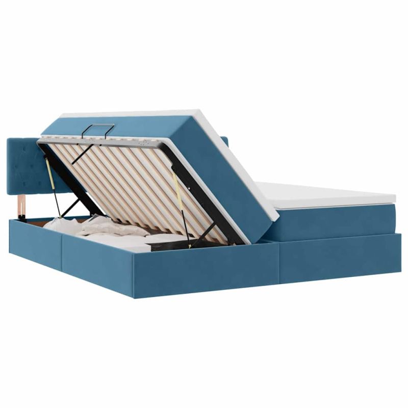 Легло с място за съхранение с матрак Тъмен син 100 x 200 cm