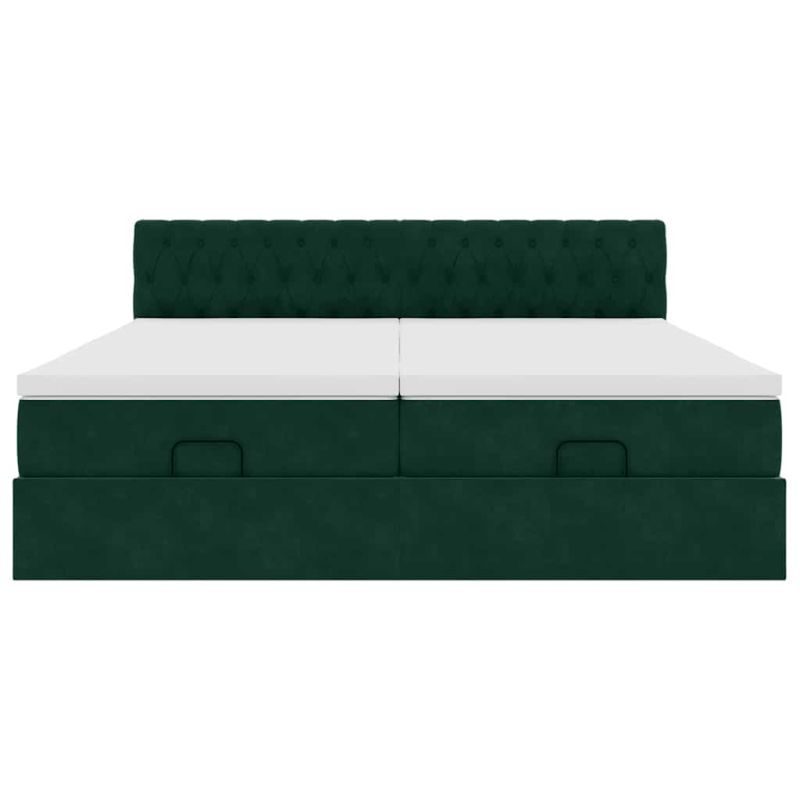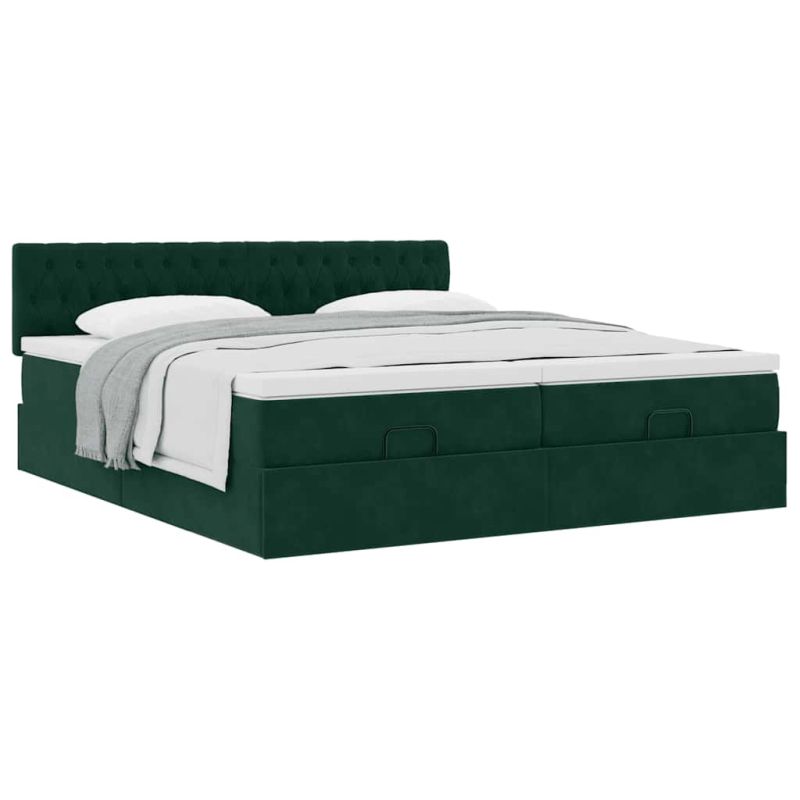 Начало Мебели Легла и аксесоари Легла и рамки за легла Османска легло с матраци, тъмнозелено, 160x200 см, кадифе
