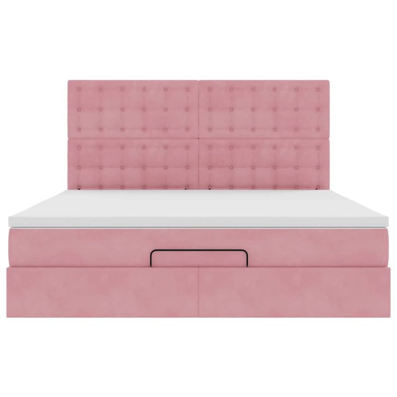 Начало Мебели Легла и аксесоари Легла и рамки за легла Османска легло с матраци, розово, 180x200 см, кадифе