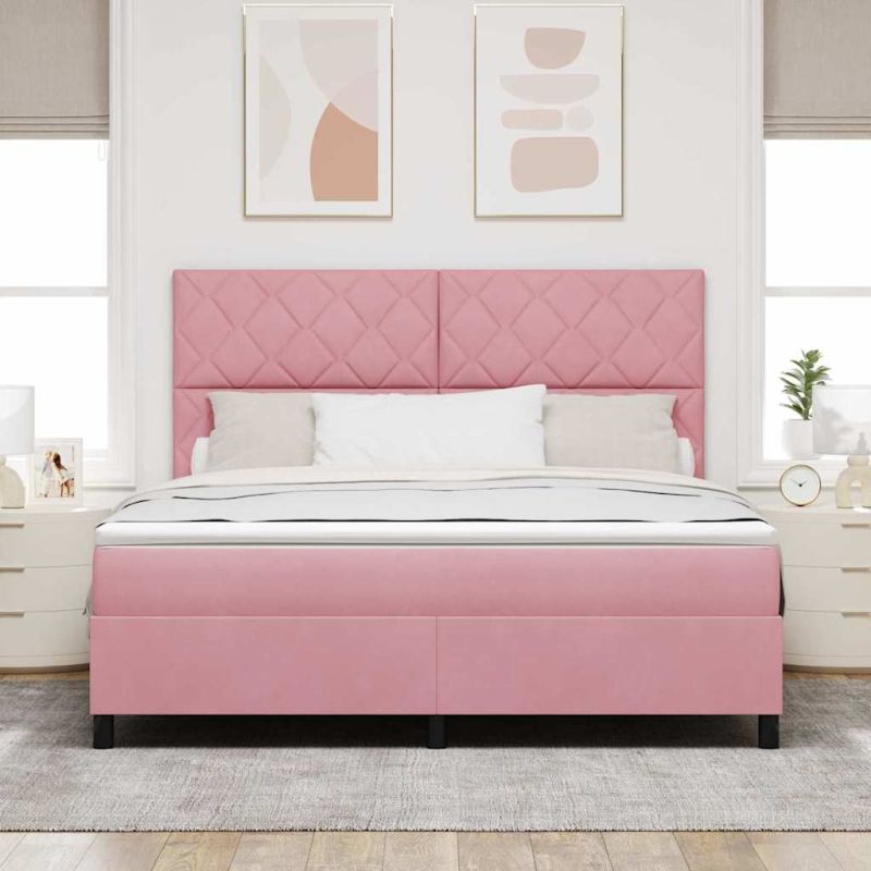 Легло с пружинирана основа с матрак Розово 180 x 200 cm текстил