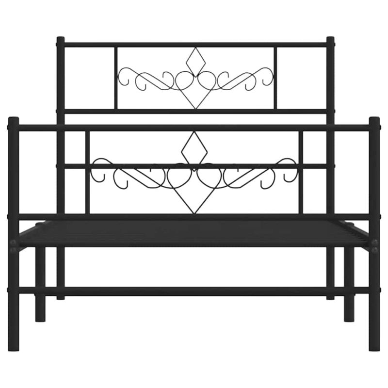 Метална рамка за легло с горна и долна табла, черна, 100x190 см