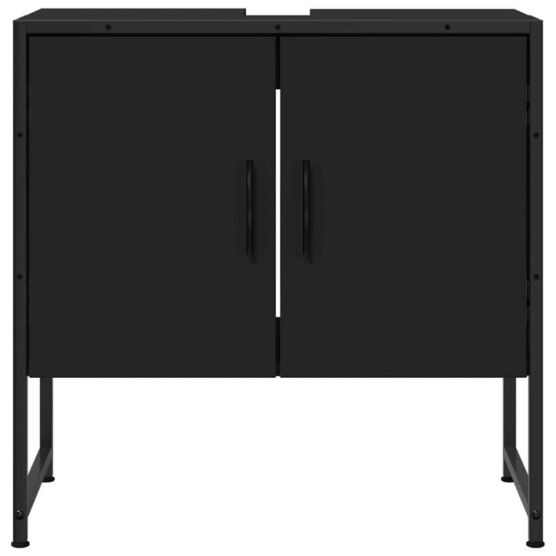 Шкаф за мивка за баня, черен, 60x33x60 см, инженерно дърво