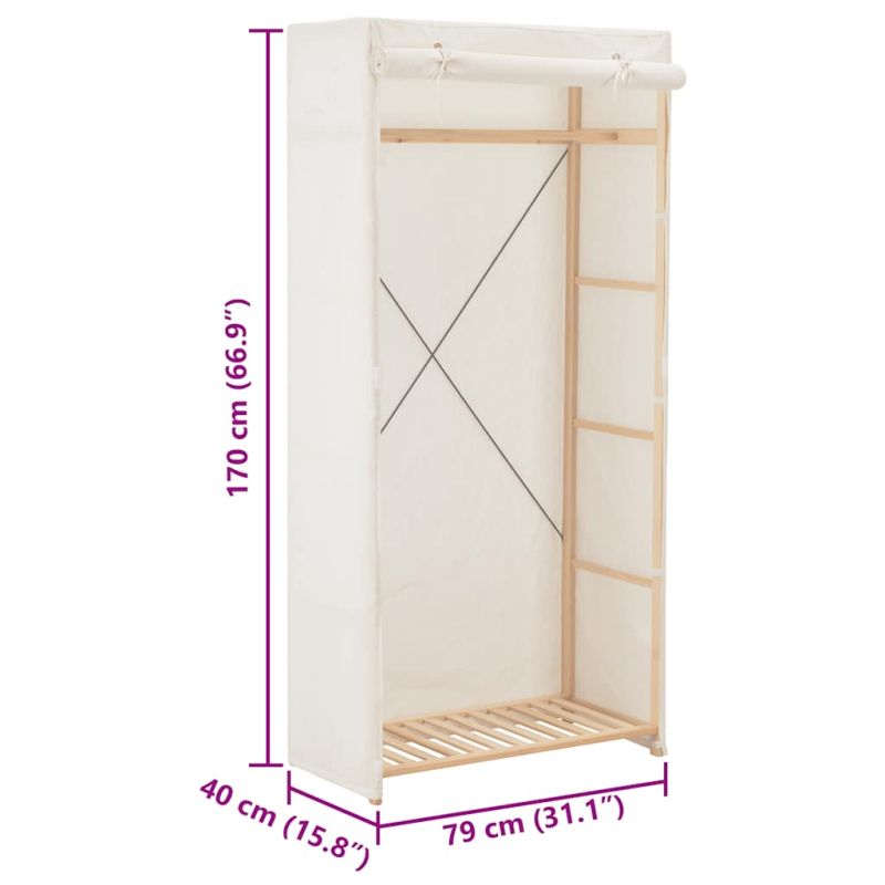 Гардероб, бял, 79x40x170 см, текстил