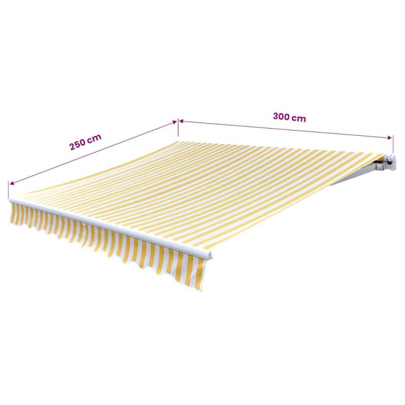 Сгъваема тента с ръчно задвижване, 300 см, жълто/бяло