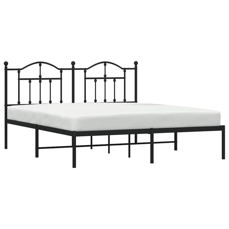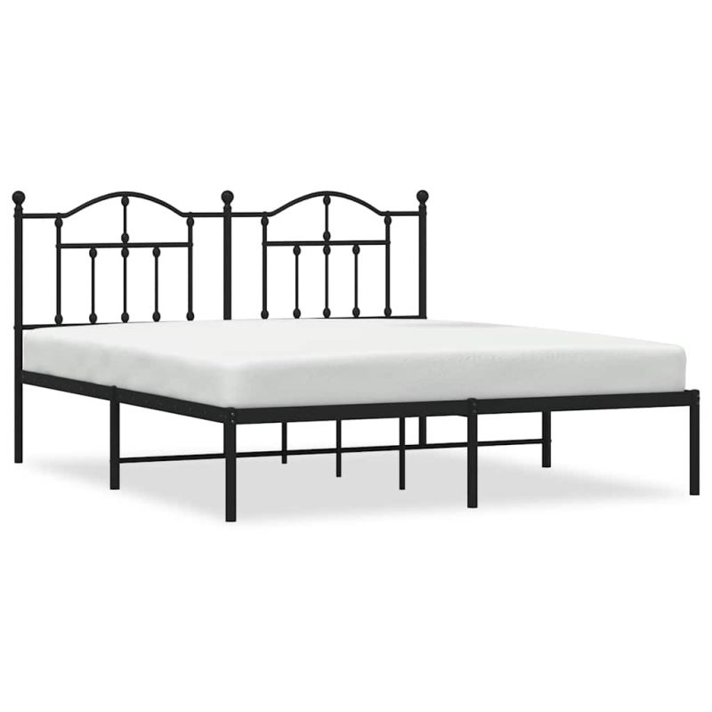 Метална рамка за легло с горна табла, черна, 160x200 см
