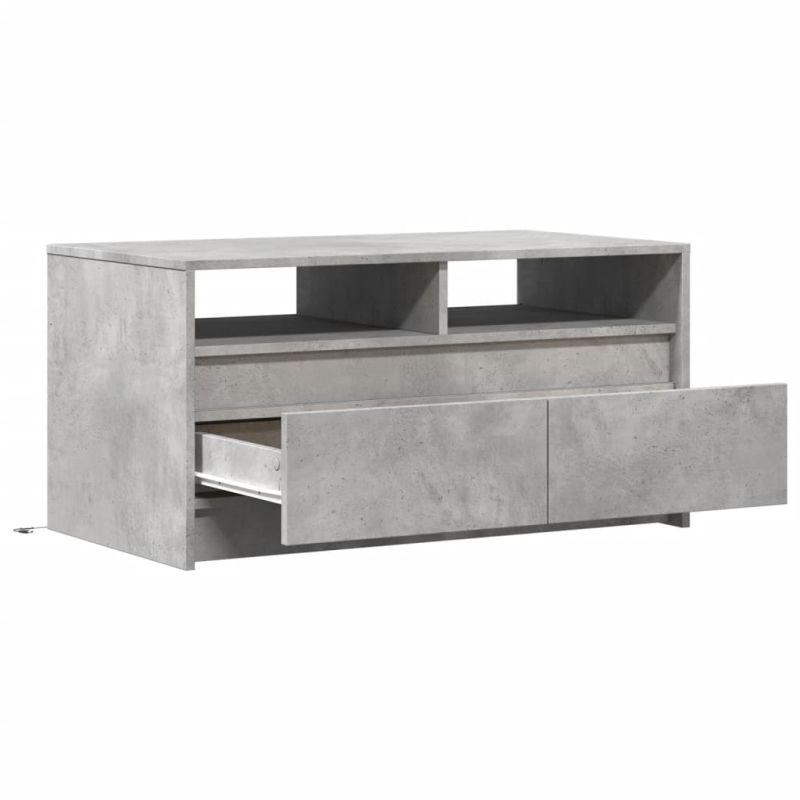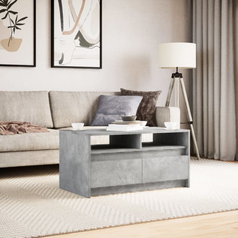 Маса за кафе с LED осветление, бетонно сив, инженерно дърво