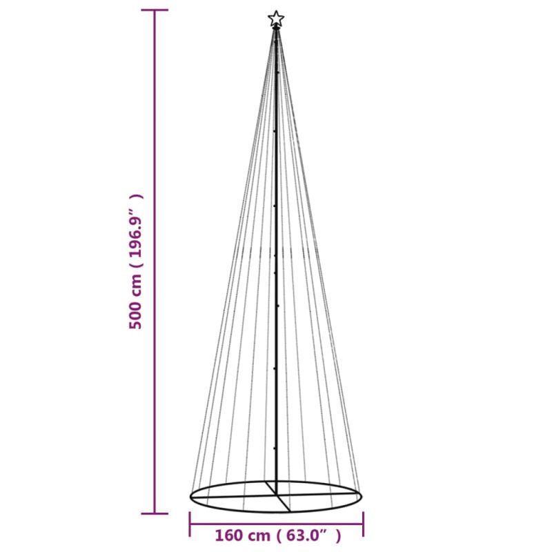 Направете предстоящата Коледа вълшебна с тази светеща коледна елха конус. Елха с LED лампи по цялата повърхност: Тази коледна елха с LED светлини по цялата повърхност с височина 500 см и диаметър 160 см е специално проектирана със 732 енергийно ефективни светодиода в топло бял цвят и в права форма.Различни светлинни ефекти: Коледната елха разполага с 8 различни светлинни ефекта: комбинация от всички ефекти, бавно светване, блещукане/светкавица, вълни, редуване/течаща вода, последователно, постоянно включено и бавно избледняване.Компактен дизайн: Благодарение на иновативния дизайн на тази елха, коледната украса може да се съхранява много компактно и да се извади за употреба през следващия празник. Лесно инсталиране: LED елхата може лесно да се постави и използва както на закрито, така и на открито върху всякакви повърхности! Забележка:При използване на този продукт трябва задължително да се уверите, че трансформаторът е поставен в суха среда. Всеки продукт се доставя с ръководство за сглобяване в кашона за лесно сглобяване. Този уред не е предназначен за използване от лица (включително деца) с намалени физически, сетивни или умствени способности или с недостатъчен опит и познания, освен ако не са получили надзор или инструкции за използването на уреда от лице, отговорно за тяхната безопасност. Този продукт не е играчка. Не позволявайте на деца да си играят с уреда. Този продукт е предназначен за използване на открито.