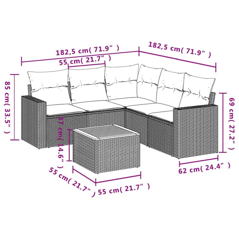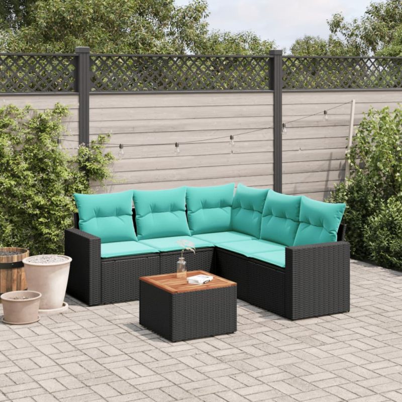 Начало Дом и градина Мебели Външни мебели Комплекти градински мебели Градински комплект диван с възглавници 6 части черен полиратан