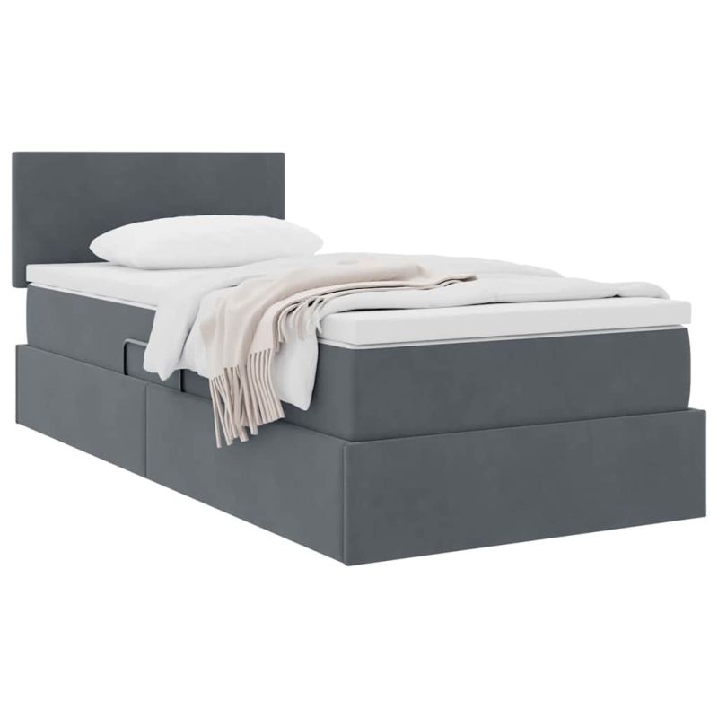 Легло с място за съхранение Тъмен сив 90 x 200 cm Кадифе