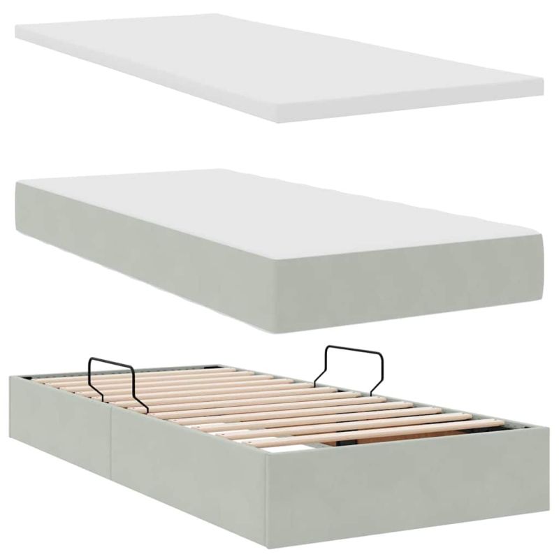 Легло с място за съхранение с матрак Светлосиво 90 x 200 cm