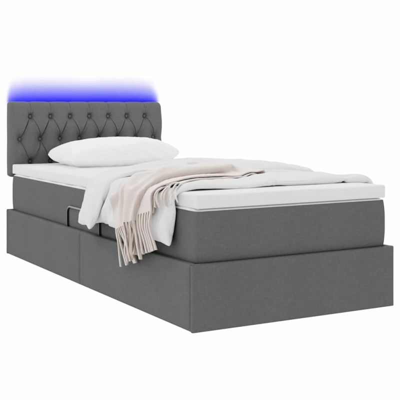Легло с място за съхранение и LED Тъмен сив 90 x 200 cm текстил