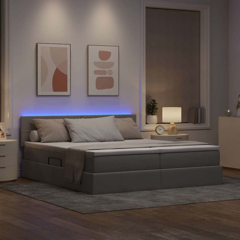 Легло С LED лентисти светлини Таупе 180 x 200 cm текстил