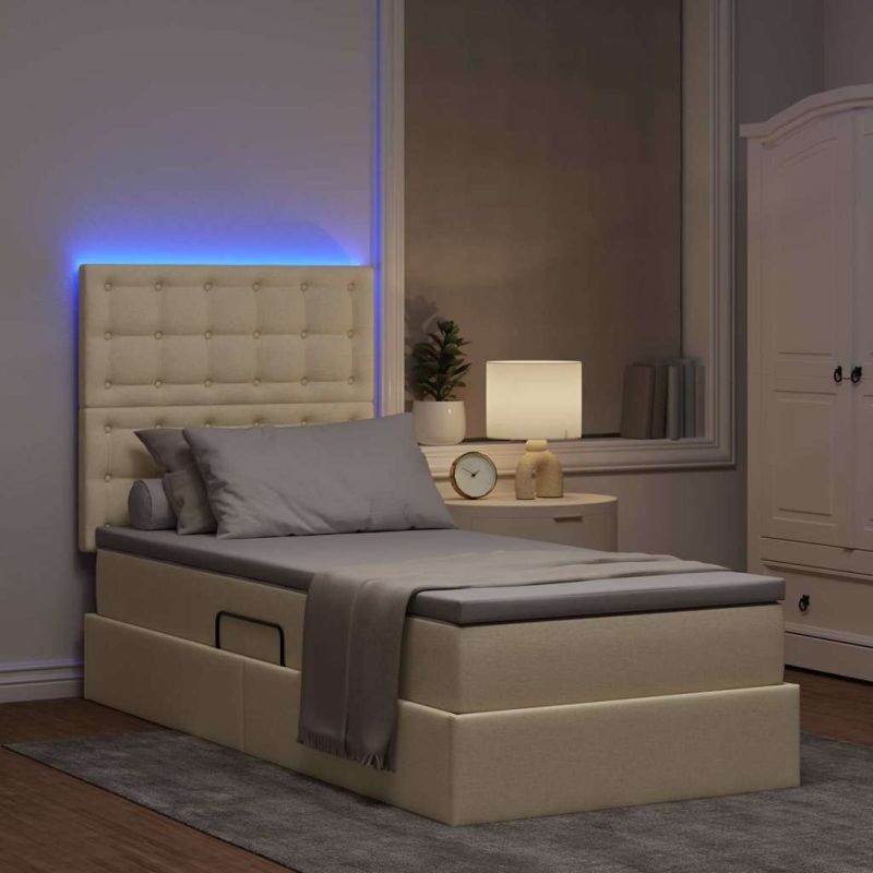 Легло с място за съхранение и LED Кремав 90 x 190 cm Полиестер