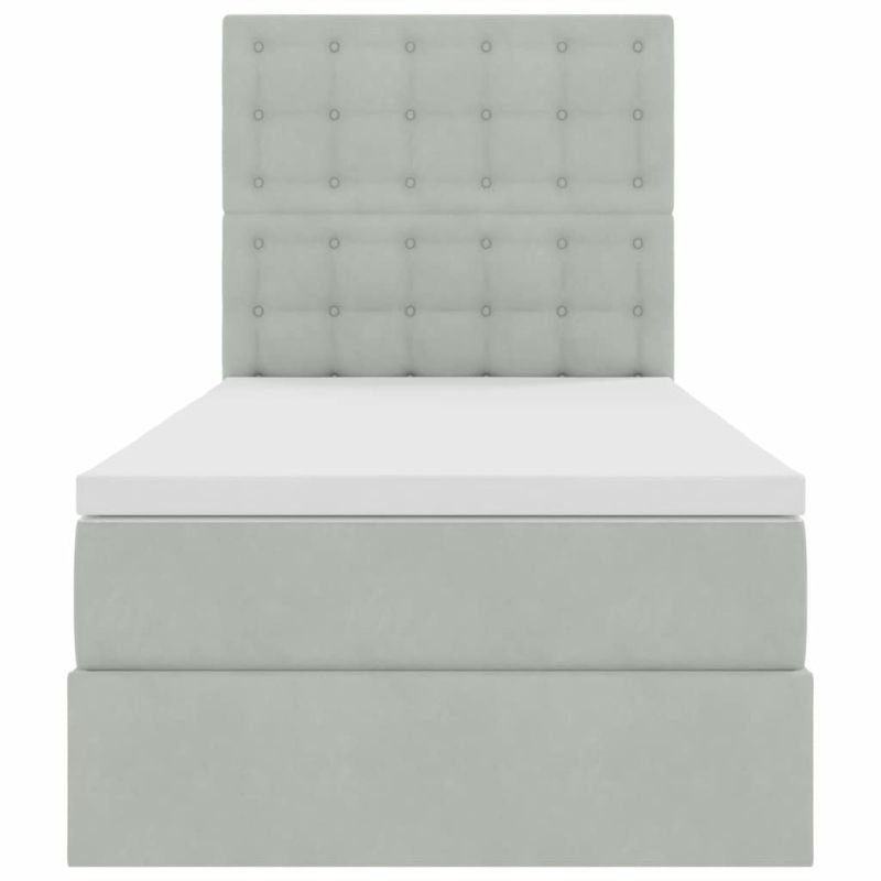Легло с място за съхранение и LED Светлосиво 90 x 200 cm Кадифе