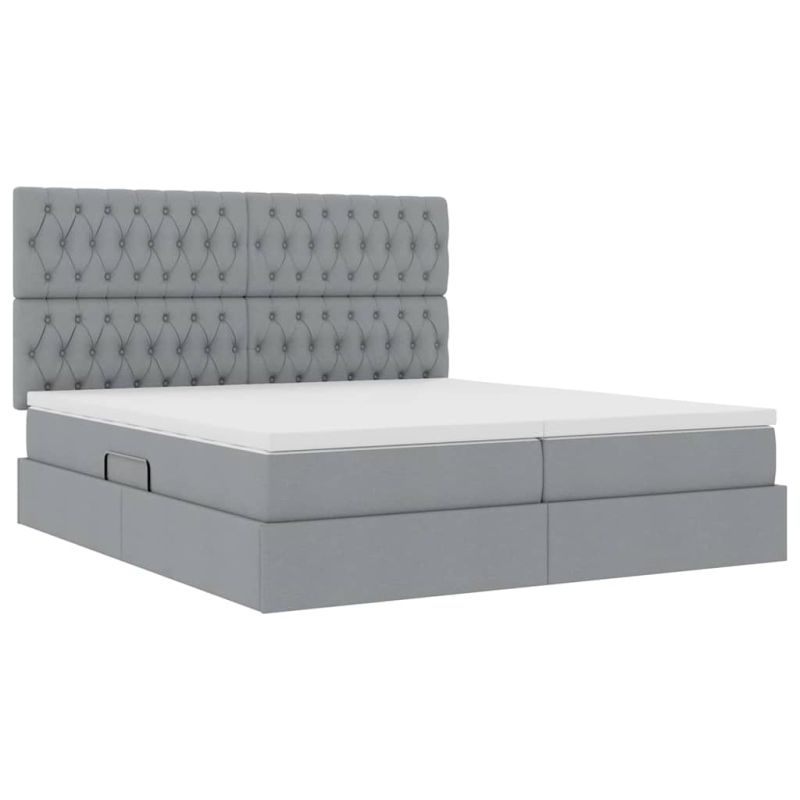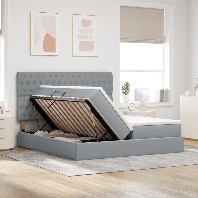 Това легло с място за съхранение отстрани съчетава модерен дизайн и практичност. Правоъгълната му форма и минималистичен вид го правят подходящо за всяка съвременна спалня. С тапицирана черна рамка, леглото е красиво и практично, подходящо за всеки, който цени естетиката и удобството. Тапицирана глава и матрак от полиестер: Леглото е с гладка повърхност, осигурявайки комфорт и стил. Главата на леглото и матракът са проектирани да издържат, като в същото време подобряват външния вид на спалнята. LED ленти за осветление: С гъвкави LED ленти, леглото добавя стил и функционалност. Лампите, захранвани от USB, лесно се настройват, за да съответстват на настроението ти. Хидравлично съхранение: С хидравличен механизъм, леглото дава лесен достъп до пространството под него. Лесно е да се поддържа реда в спалнята. Матрак от пяна със средна твърдост: Матракът предлага идеално баланс между мекота и опора, подходящ за всяка поза на сън. Конструкция от метал и полиестер: Комбинацията от метал и полиестер прави леглото здраво и приятно за окото. Металната рамка е издръжлива, а полиестерът добавя мекота. Този продукт се захранва с DC 5V, но сертифицираният 5V USB източник на захранване не е включен в комплекта. По-високото напрежение може да доведе до прегряване на устройството и да доведе до повреда на устройството и потенциален риск от прегряване и пожар.
