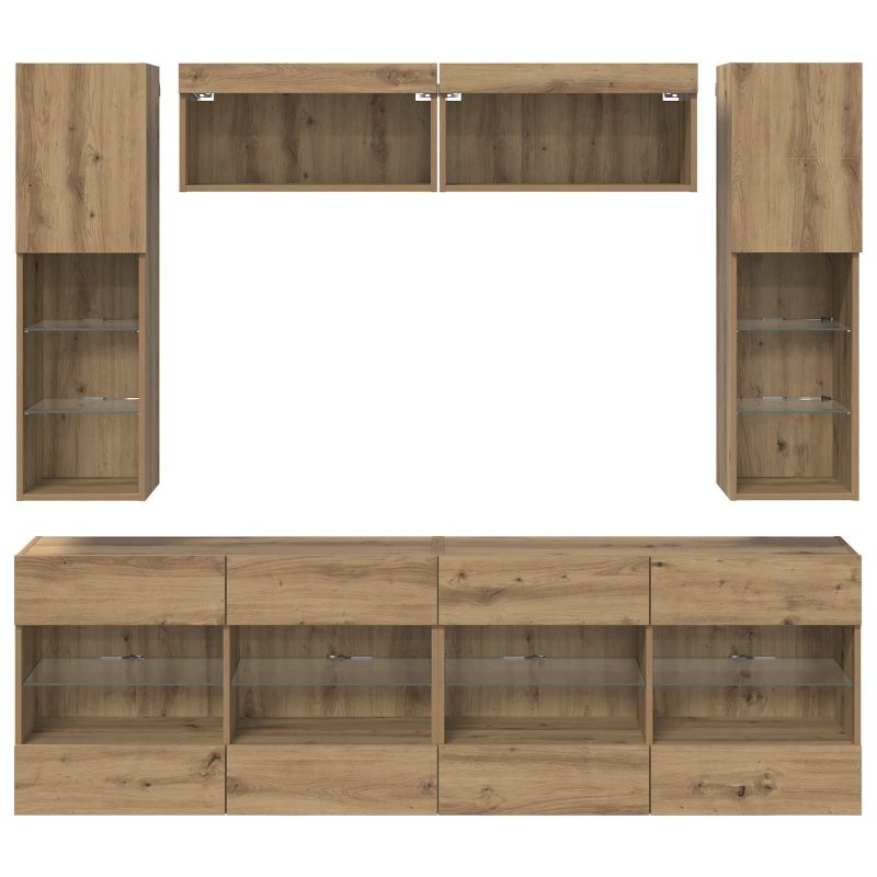 Комплект за стена на телевизор с LED 6 pcs Артизан Дъб