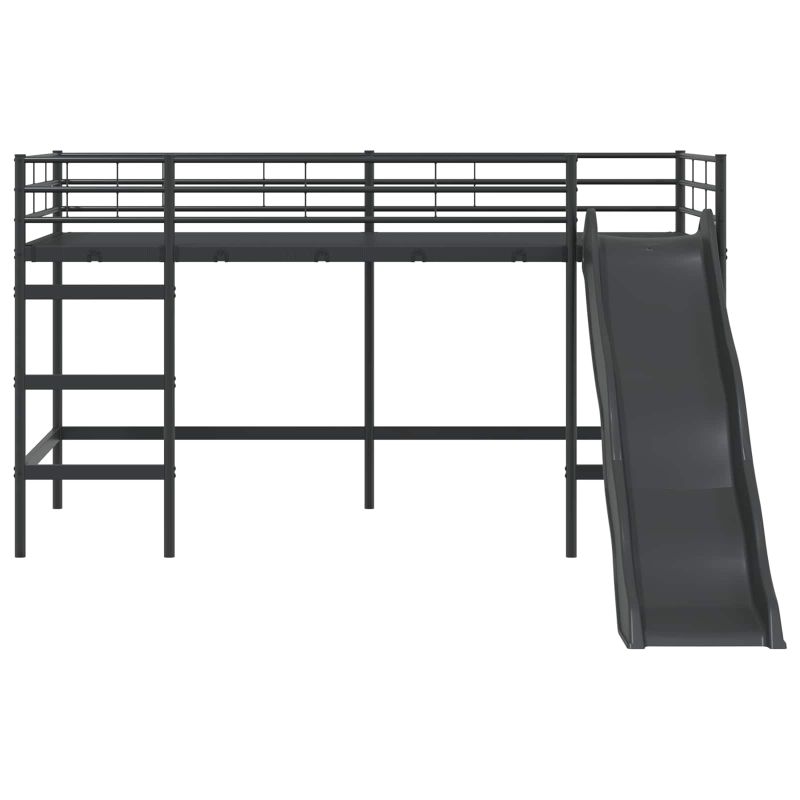 Детската леглова рамка с пързалка е страхотна комбинация от стил, практичност и забавление, идеална за деца и тийнейджъри. Тя преобразява всяка стая с елегантния си правоъгълен дизайн и гладко, матово покритие, добавяйки игрив, но модерен акцент. Леглото предлага уникален начин за повдигане на детското пространство благодарение на вградената пързалка, която превръща лягането в приключение. Гладката повърхност и чистият дизайн показват модерен стил, който подхожда на всеки интериор. Модерна стоманена конструкция - С високо качество и проектирано да е издръжливо и с добра опора. Металната конструкция придава стилен, модерен вид, идеален за детските стаи. Интересна функция с пързалка - Иновативната пързалка добавя игрив елемент в ежедневието, превръщайки слизането от леглото в забавно преживяване за децата. Дишащ матов завършек - Нерефлективният матов завършек не само изглежда добре, но и се почиства лесно. Комбиниран с проветрена конструкция, осигурява комфорт по време на ползване. Структура, спестяваща пространство - Подходящо проектирано за по-малки стаи, леглото съчетава функционалността с естетиката, оставяйки пространство под него за игрална зона. Лесно сглобяване - Проектирано с внимание към простотата, леглото се сглобява лесно с обикновени инструменти и е с ясни инструкции, което улеснява процеса на настройване, идеално за заети домакинства. Двуетажните/високите легла трябва да бъдат оборудвани с препоръчаните матраци преди употреба. Двуетажното легло трябва да се използва на проветриво място, за да се предотврати появата на мухъл в и около леглото. Достъпът до горното легло е възможен само по стъпала, не се качвайте по друг начин. Проверявайте редовно дали всички крепежни елементи са добре затегнати. Високите легла и горното легло на двуетажните легла не са подходящи за деца под шест години поради риск от нараняване при падане. Не използвайте двуетажното/високото легло, ако някоя от конструктивните части е счупена или липсва. Двуетажните/високите легла могат да представляват сериозен риск от нараняване чрез удушаване, ако не се използват правилно. Никога не закачайте или окачвайте предмети на части от двуетажното/високото легло, които не са предназначени за използване с леглото, например, но не само, въжета, връзки, корди, куки, колани и чанти. Децата могат да останат заклещени между леглото и стената, наклона на покрива, тавана, съседни мебели (например шкафове) и други подобни. За да се избегне рискът от сериозни наранявания, разстоянието между горната предпазна преграда и съседната конструкция не трябва да надвишава 75 мм или трябва да бъде повече от 230 мм. Максимална дебелина на матрака: 110 мм. ПРЕДУПРЕЖДЕНИЕ. Този продукт трябва да бъде закрепен към стена или конструкция на сграда.