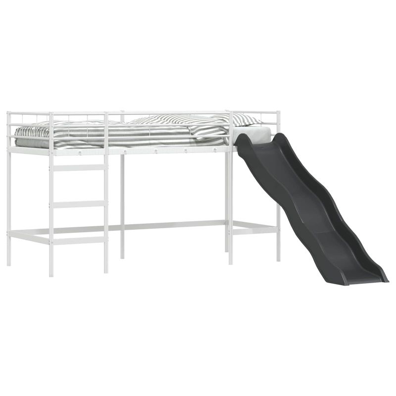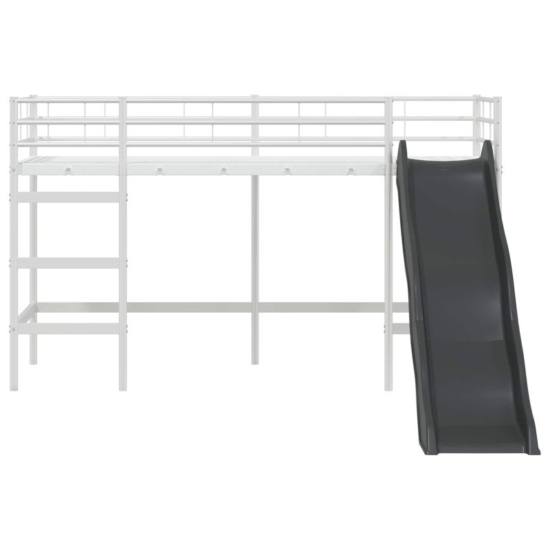 Детската леглова рамка с пързалка е страхотна комбинация от стил, практичност и забавление, идеална за деца и тийнейджъри. Тя преобразява всяка стая с елегантния си правоъгълен дизайн и гладко, матово покритие, добавяйки игрив, но модерен акцент. Леглото предлага уникален начин за повдигане на детското пространство благодарение на вградената пързалка, която превръща лягането в приключение. Гладката повърхност и чистият дизайн показват модерен стил, който подхожда на всеки интериор. Модерна стоманена конструкция - С високо качество и проектирано да е издръжливо и с добра опора. Металната конструкция придава стилен, модерен вид, идеален за детските стаи. Интересна функция с пързалка - Иновативната пързалка добавя игрив елемент в ежедневието, превръщайки слизането от леглото в забавно преживяване за децата. Дишащ матов завършек - Нерефлективният матов завършек не само изглежда добре, но и се почиства лесно. Комбиниран с проветрена конструкция, осигурява комфорт по време на ползване. Структура, спестяваща пространство - Подходящо проектирано за по-малки стаи, леглото съчетава функционалността с естетиката, оставяйки пространство под него за игрална зона. Лесно сглобяване - Проектирано с внимание към простотата, леглото се сглобява лесно с обикновени инструменти и е с ясни инструкции, което улеснява процеса на настройване, идеално за заети домакинства. Двуетажните/високите легла трябва да бъдат оборудвани с препоръчаните матраци преди употреба. Двуетажното легло трябва да се използва на проветриво място, за да се предотврати появата на мухъл в и около леглото. Достъпът до горното легло е възможен само по стъпала, не се качвайте по друг начин. Проверявайте редовно дали всички крепежни елементи са добре затегнати. Високите легла и горното легло на двуетажните легла не са подходящи за деца под шест години поради риск от нараняване при падане. Не използвайте двуетажното/високото легло, ако някоя от конструктивните части е счупена или липсва. Двуетажните/високите легла могат да представляват сериозен риск от нараняване чрез удушаване, ако не се използват правилно. Никога не закачайте или окачвайте предмети на части от двуетажното/високото легло, които не са предназначени за използване с леглото, например, но не само, въжета, връзки, корди, куки, колани и чанти. Децата могат да останат заклещени между леглото и стената, наклона на покрива, тавана, съседни мебели (например шкафове) и други подобни. За да се избегне рискът от сериозни наранявания, разстоянието между горната предпазна преграда и съседната конструкция не трябва да надвишава 75 мм или трябва да бъде повече от 230 мм. Максимална дебелина на матрака: 110 мм. ПРЕДУПРЕЖДЕНИЕ. Този продукт трябва да бъде закрепен към стена или конструкция на сграда.
