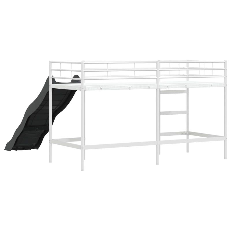 Детската леглова рамка с пързалка е страхотна комбинация от стил, практичност и забавление, идеална за деца и тийнейджъри. Тя преобразява всяка стая с елегантния си правоъгълен дизайн и гладко, матово покритие, добавяйки игрив, но модерен акцент. Леглото предлага уникален начин за повдигане на детското пространство благодарение на вградената пързалка, която превръща лягането в приключение. Гладката повърхност и чистият дизайн показват модерен стил, който подхожда на всеки интериор. Модерна стоманена конструкция - С високо качество и проектирано да е издръжливо и с добра опора. Металната конструкция придава стилен, модерен вид, идеален за детските стаи. Интересна функция с пързалка - Иновативната пързалка добавя игрив елемент в ежедневието, превръщайки слизането от леглото в забавно преживяване за децата. Дишащ матов завършек - Нерефлективният матов завършек не само изглежда добре, но и се почиства лесно. Комбиниран с проветрена конструкция, осигурява комфорт по време на ползване. Структура, спестяваща пространство - Подходящо проектирано за по-малки стаи, леглото съчетава функционалността с естетиката, оставяйки пространство под него за игрална зона. Лесно сглобяване - Проектирано с внимание към простотата, леглото се сглобява лесно с обикновени инструменти и е с ясни инструкции, което улеснява процеса на настройване, идеално за заети домакинства. Двуетажните/високите легла трябва да бъдат оборудвани с препоръчаните матраци преди употреба. Двуетажното легло трябва да се използва на проветриво място, за да се предотврати появата на мухъл в и около леглото. Достъпът до горното легло е възможен само по стъпала, не се качвайте по друг начин. Проверявайте редовно дали всички крепежни елементи са добре затегнати. Високите легла и горното легло на двуетажните легла не са подходящи за деца под шест години поради риск от нараняване при падане. Не използвайте двуетажното/високото легло, ако някоя от конструктивните части е счупена или липсва. Двуетажните/високите легла могат да представляват сериозен риск от нараняване чрез удушаване, ако не се използват правилно. Никога не закачайте или окачвайте предмети на части от двуетажното/високото легло, които не са предназначени за използване с леглото, например, но не само, въжета, връзки, корди, куки, колани и чанти. Децата могат да останат заклещени между леглото и стената, наклона на покрива, тавана, съседни мебели (например шкафове) и други подобни. За да се избегне рискът от сериозни наранявания, разстоянието между горната предпазна преграда и съседната конструкция не трябва да надвишава 75 мм или трябва да бъде повече от 230 мм. Максимална дебелина на матрака: 110 мм. ПРЕДУПРЕЖДЕНИЕ. Този продукт трябва да бъде закрепен към стена или конструкция на сграда.