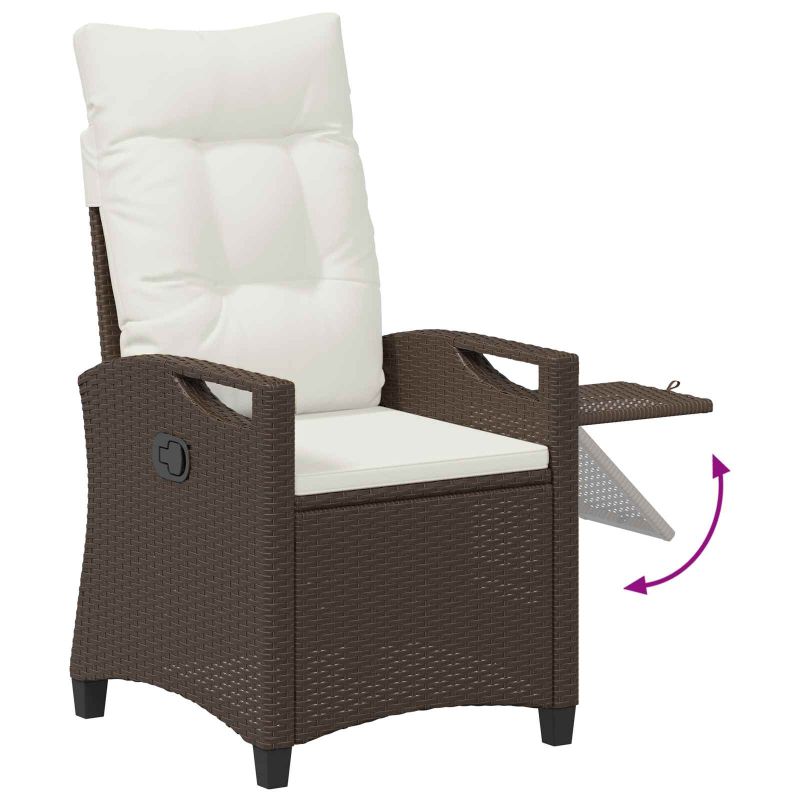 Този reclining garden chair съчетава стил и функционалност, идеален за всяка открита обстановка. Със съвременен дизайн, той привлича вниманието с чистите си линии и ратановия си вид. Сгъваемата масичка добавя удобство, което го прави идеален за релакс в градината или терасата. Регулируемата облегалка осигурява комфорт, настройваща се спрямо вашите предпочитания. Материали от Полиестер и Стомана: Reclining garden chair е изработен от качествени материали, които го правят стилен и дълготраен. Полиестерът осигурява комфорт, а праховото покритие на стоманата го прави устойчив на външни условия. Компоненти и Аксесоари: Сгъваемата масичка осигурява допълнително пространство за напитки или закуски. Плоските подлакътници позволяват комфорт дори при дълго използване, а здравите крака му дават стабилност. Регулируеми Функции: Проектиран с регулируема облегалка, столът позволява накланяне според желанието на потребителите. Регулируемата височина от 87 см до 105 см предлага допълнителна гъвкавост за комфорт. Препоръчителна Употреба на Открито: Идеален за слънчеви дни, този стол допълва градини и тераси. Портативността му го прави перфектен за самостоятелно релаксиране или за забавления с приятели. Грижа и Поддръжка: Лесно е да поддържате стола, просто го избърсвате с влажен плат. Устойчивите материали помагат да останете привлекателен през цялата година.