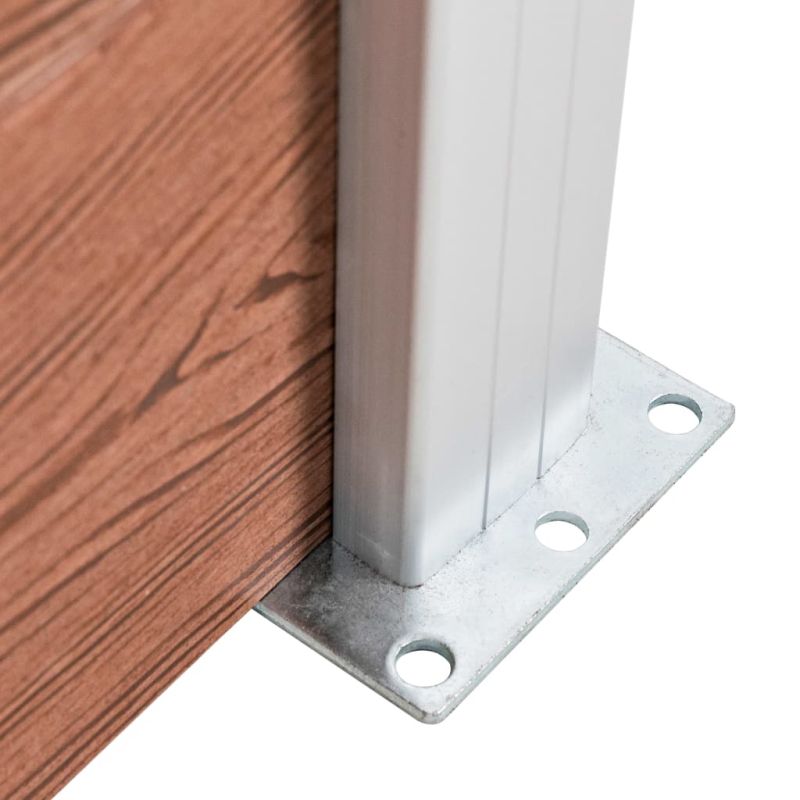 Нашият панелен комплект за ограда от WPC ще бъде атрактивен начин за заграждане на вашата градина! Тази WPC ограда има принт на дървесни шарки от едната страна и обикновен принт от другата страна, така че можете да изберете дизайна, който ви харесва повече. Нашият панел от дървонапълнен полимерен композит не изисква никаква допълнителна обработка, като лакиране или боядисване. Той е много издръжлив и устойчив на гниене или ръжда. Благодарение на алуминиевия горен профил, оградните панели могат да бъдат плътно прикрепени един към друг, което увеличава тяхната твърдост и здравина срещу удари. Проектирани като модулна система, ограждащите плоскости са лесни за инсталиране и ви позволяват да разширите оградата според желанието си. Тези стълбове разполагат с три слота, които правят възможно монтирането на оградата по различни начини, например в права линия (180 градуса), под прав ъгъл (90 градуса) или в "Т"-образна форма. Многофункционалните стоманени крачета могат да бъдат фиксирани по два начина. Първият е чрез завинтването им върху повърхност, като се използват предоставените анкери за земя. Вторият начин е чрез закрепването им в циментова основа, като се използват клиновете за земя (не са включени в доставката). Този ограден комплект се сглобява лесно. Доставката включва 9 WPC дъски, 2 стълба, 2 стоманени основи и 1 алуминиева шина.