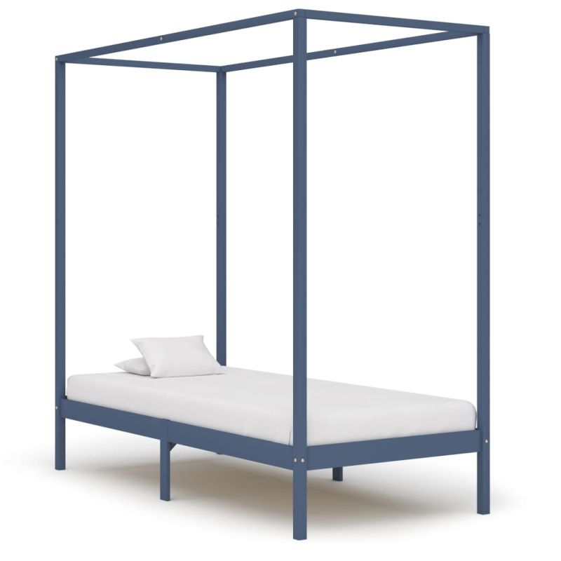 Рамка за легло с балдахин, сива, бор масив, 100х200 см