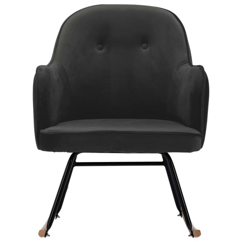 Нашият люлеещ се стол с модерен дизайн ще внесе домашен уют и комфорт във вашето жилищно пространство. Люлеещият стол е тапициран с кадифе и изработен от прахово боядисана желязна рамка, което го прави стабилен и мек при седене. Плътно подплатената седалка ви носи допълнителен комфорт, докато сте на люлеещия се фотьойл. Освен това краката от буково дърво също осигуряват голяма стабилност. Благодарение на дългите крака, столът няма да се преобърне лесно. Този подплатен люлеещ стол може да се използва във вашата всекидневна, градина, вътрешен двор и всяка друга стая. Максимално 110 кг на седалка. Съобразете се с риска от открит огън и други източници на силна топлина в близост до продукта.