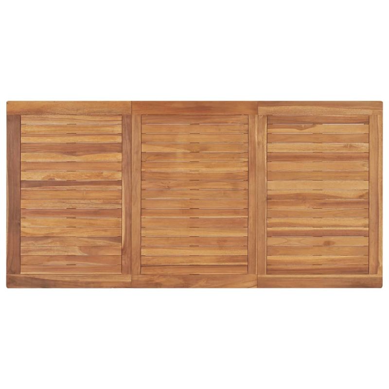 Този дървен градински трапезен комплект добавя нотка естествен чар към вашата кухня, градина или вътрешен двор. Тази мебел от тик е изработена от изключително издръжлива тикова твърда дървесина, която е суха – изсушена в пещ, а след това фино шлифована, за да ѝ се придаде много гладък вид. Тиковото дърво е известно с изключителната си здравина и устойчивост на атмосферни влияния, което го прави далеч по-подходящо за градински мебели от всеки друг вид дърво. Тиковата дървесина е идеалният избор, ако искате да закупите дълготрайна градинска мебел. Нанесен е красив финиш на водна основа за придаване на топъл цвят на дървото. Благодарение на изключително дебелия плот и големите крака тази маса от масивно дърво е много издръжлива и може да предостави удобство при настаняването на вашите гости. Столовете се отличават с изискана визия, която може незабавно да се слее с всяко жилищно пространство. Благодарение на водоустойчивата си функция и класическия си външен вид можете да поставите този комплект мебели навсякъде във вашия любим дом – на закрито или навън! Максимално 110 кг на седалка.
