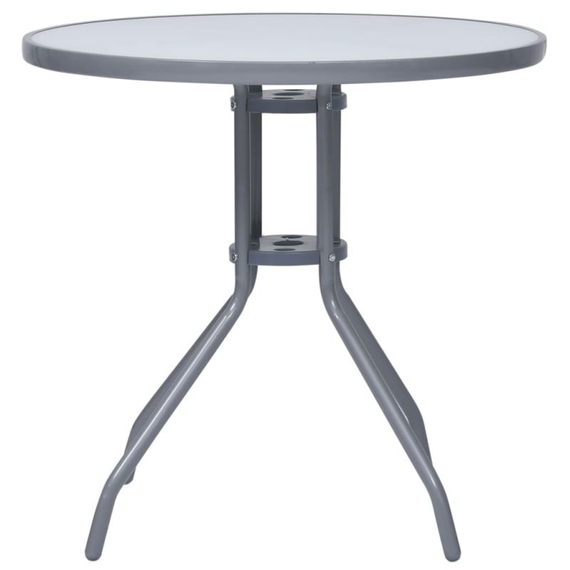 Този практичен, но стилен градински трапезен комплект е идеален за отдих или вечеря във вашата градина или вътрешен двор. Алуминиевата рамка с прахово покритие прави комплекта мебели много здрав и издръжлив. Градинските столове имат меки на допир седалки и облегалки от textilene, регулируеми на 7 нива, така че винаги можете да намерите най-удобната позиция за сядане. Фотьойлите могат да се сгъват, за да пестят място, когато не се използват. Масата разполага със стъклен плот, който се почиства лесно и е подходящ за използване на открито. Забележка: За да удължите живота на вашите градински мебели, препоръчваме ви да ги почиствате редовно и да не ги оставяте ненужно на открито без защита.Почистване: Използвайте мек сапунен разтворСъхранение: Ако е възможно, съхранявайте на хладно и сухо място на закрито. Ако продуктът се съхранява на открито, защитете го с водоустойчиво покривало. Избършете и изсушете излишната вода или сняг от плоските повърхности след дъжд или снеговалеж. Позволете достатъчно циркулация на въздуха, за да избегнете повреди, свързани с влагата.