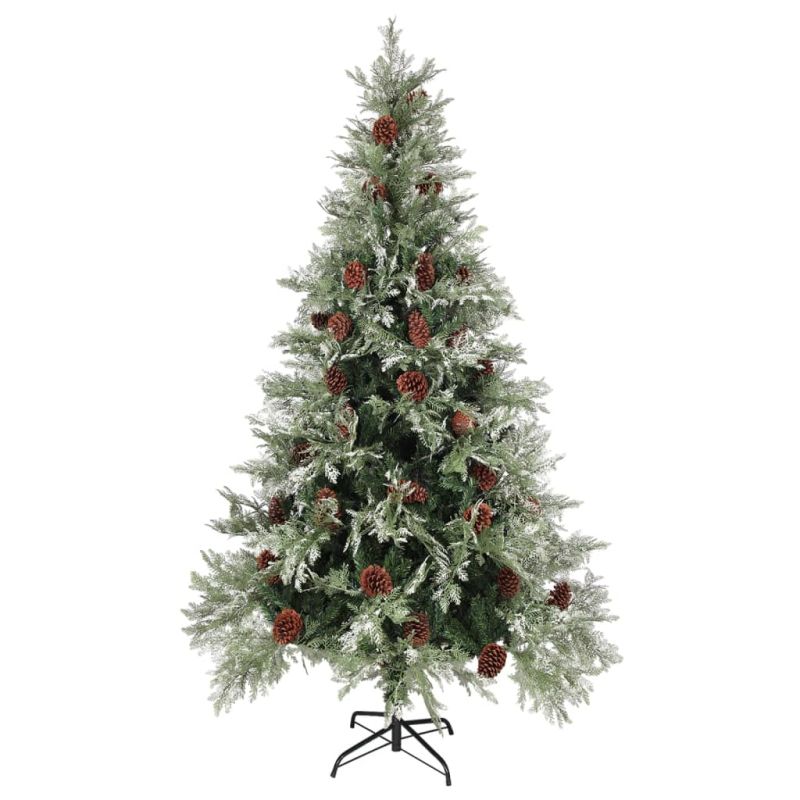Осветена коледна елха с шишарки, зелен и бял, 195 см, PVC и PE