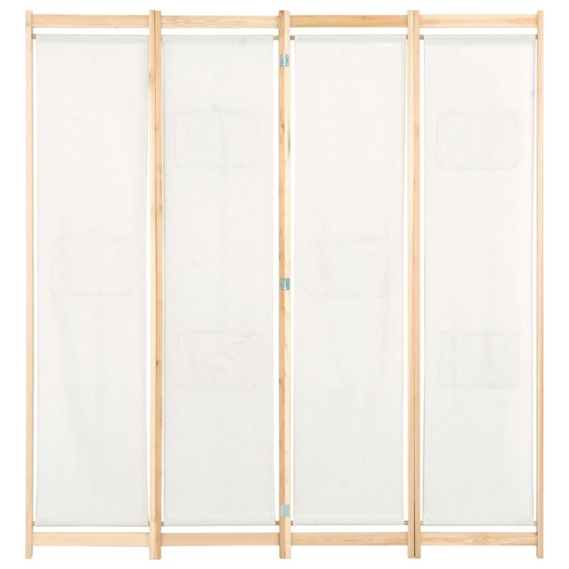 Параван за стая, 4 панела, кремав, 160x170x4 cм, текстил