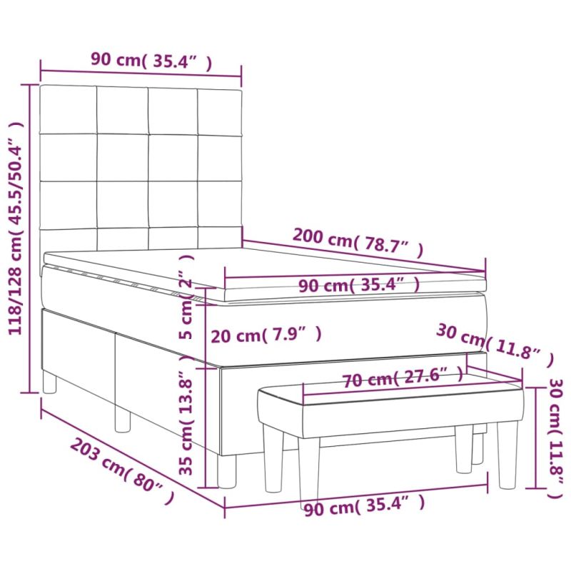 Боксспринг легло с матрак, кремава, 90x200 см, плат