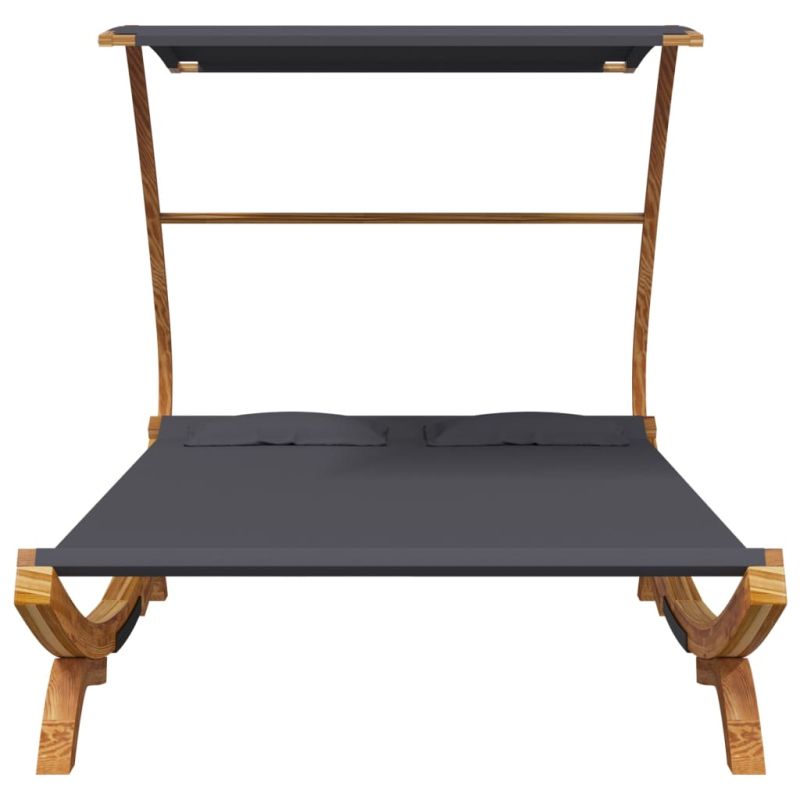 Начало Мебели Външни мебели Градински легла Лаундж легло с навес 165x203x138 см извито дърво масив антрацит