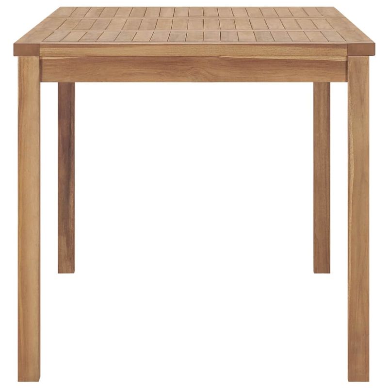Тази дървена трапезна маса добавя нотка естествен чар към вашата кухня, градина или вътрешен двор. Тази мебел от тик е изработена от изключително издръжлива тикова твърда дървесина, която е суха – изсушена в пещ, а след това фино шлифована, за да ѝ се придаде много гладък вид. Тиковото дърво е известно с изключителната си здравина и устойчивост на атмосферни влияния, което го прави далеч по-подходящо за градински мебели от всеки друг вид дърво. Тиковата дървесина е идеалният избор, ако искате да закупите дълготрайна градинска мебел. Нанесен е красив финиш на водна основа за придаване на топъл цвят на дървото. Благодарение на дървения плот и краката, тази градинска маса е много издръжлива и може удобно да настани вашите гости.