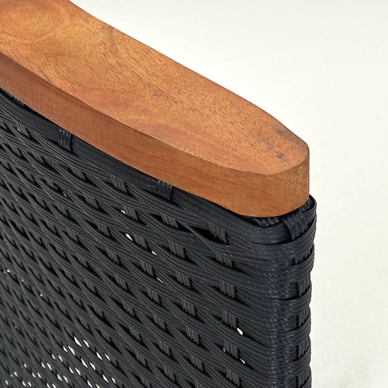 Тези градински трапезни столове от полиратан ще се превърнат във фокусната точка на вашата градина или вътрешен двор! Комплектът ще бъде чудесен избор за вечеря на открито или за отдих в градината. С прахово боядисана стоманена рамка, обвита с полиратан, градинският стол е здрав и лесен за почистване. Подлакътниците са изработени от масивно акациево дърво – тропическа твърда дървесина, която ще внесе рустик чар. В допълнение, трапезният стол е проектиран с извита облегалка и подлакътник, което му придава ергономична форма. Дебелата и мека възглавница на седалката добавя допълнителен комфорт при сядане. Калъфките на възглавниците с ципове могат лесно да се свалят и перат. Благодарение на олекотената конструкция, градинският стол е лесен за преместване. Забележка: За да удължите живота на вашите градински мебели, ви препоръчваме да ги защитите с водоустойчиво покритие. Максимално 110 кг на седалка. Съобразете се с риска от открит огън и други източници на силна топлина в близост до продукта.