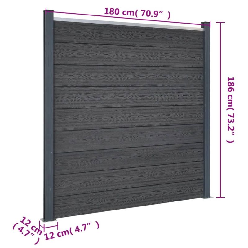 Комплект ограден панел, сив, 526x186 см, WPC