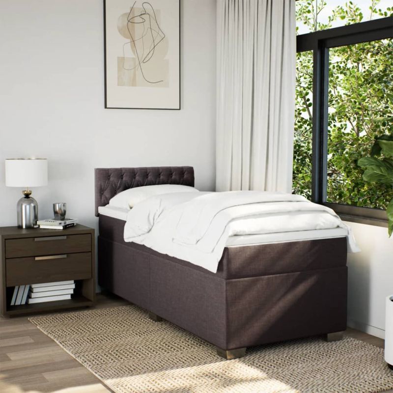 Боксспринг легло с матрак, тъмнокафяво, 90x190 см, плат