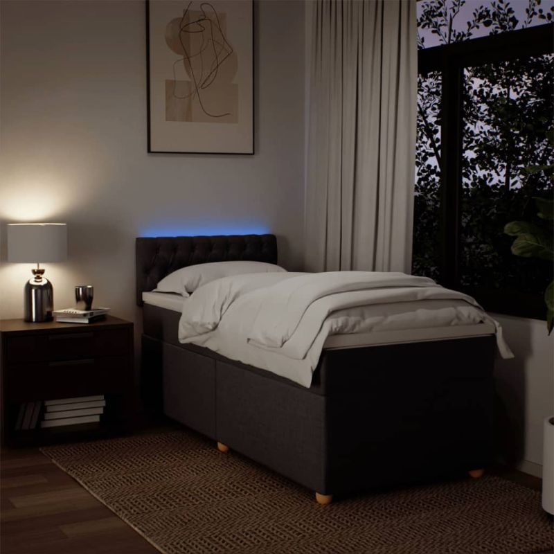Боксспринг легло с матрак, тъмнокафяво, 90x190 см, плат