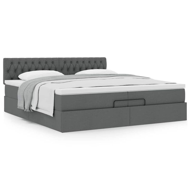 Начало Мебели Легла и аксесоари Легла и рамки за легла Османска легло с матрак, тъмносиво, 200x200 см, плат