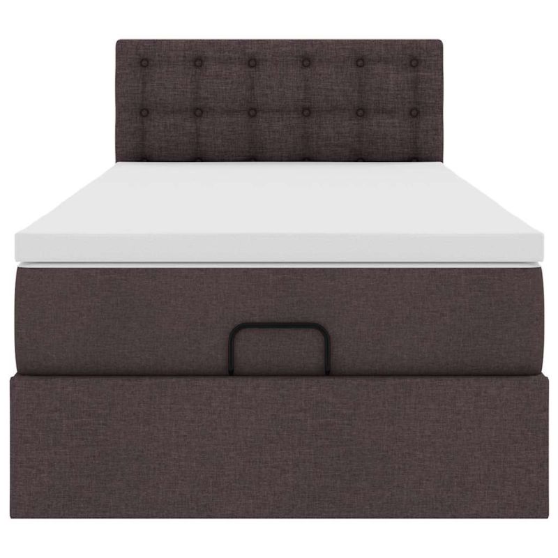 Османска легло с матрак и LED, тъмнокафяво, 90x200 см, плат